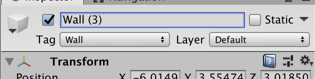 위의 코드가 잘 작동하기 위해서는 Wall의 tag를 'Wall'로 설정해줘야 한다. 그렇지 않으면 other.tag == "Wall"에 상응하는 tag가 존재하지 않아서 Wall에 부딪쳐도 사라지지 않는다.