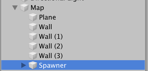 Spawner들을 묶어서 Plane과 Wall이 있는 부분으로 옮겨준다. 하나로 묶어줘야 Rotator Script를 넣어줬을 때 땅 전체가 하나로 묶여서 돌 수 있기 때문에.